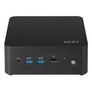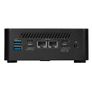 | Projeto | | | Tipo de slot para trava de cabo | Kensington | | Montagem VESA | Sim | Desempenho | | | Chipset | Intel® SoC | | Fator de forma | NUC | | Alto-falantes embutidos | Não | | Módulo de Plataforma Confiável (TPM) | Sim | | Versão do Trusted Platform Module (TPM) | 2.0 | | Tipo de produto | Mini PC | Software | | | Sistema operacional instalado | Windows 11 Pro | Portas e Interfaces | | | Número de portas Ethernet LAN (RJ-45) | 2 | | Entrada para microfone | Não | | Tomada de entrada DC | Sim | | Porta DVI | Não | | Número de portas HDMI | 2 | | Versão HDMI | 2.1 | | Porta combinada de saída para fone de ouvido/microfone | Sim | | Número de portas USB 3.2 Gen 2 (3.1 Gen 2) Tipo A | 2 | | Número de portas USB 3.2 Gen 2 (3.1 Gen 2) Tipo C | 1 | | Número de portas Thunderbolt 4 | 2 | | Intel® Thunderbolt 4 | Sim | Conexão | | | Padrões de Wi-Fi | Wi-Fi 6E (802.11ax) | | Versão Bluetooth | 5.3 | | Ethernet | Sim | | Bluetooth | Sim | | Controlador LAN | Intel I226-V | | Wi-fi | Sim | | Padrão Wi-Fi | Wi-Fi 6E (802.11ax) | | Modelo de controlador WLAN | Intel Wi-Fi 6E AX211 | Peso e dimensões | | | Peso | 630 g | | Peso da embalagem | 1,45 kg | | Altura | 37,5 milímetros | | Largo | 119,6 milímetros | | Profundidade | 115,2 milímetros | | Profundidade do pacote | 220 milímetros | | Altura da embalagem | 94 milímetros | | Largura da embalagem | 205 milímetros | Condições ambientais | | | Faixa de umidade relativa para operação | 0 - 85% | | Faixa de temperatura de armazenamento | -20 - 60 °C | | Faixa de temperatura operacional | 0 - 35 °C | | Faixa de umidade relativa durante o armazenamento | 0 - 90% | Controle de potência | | | Fonte de energia | 120 W | Exposição | | | Tela incluída | Não | Outras características | | | Interface de montagem em painel | 100 x 100 mm | | Tipo de resfriamento | Ativo | | Chipset gráfico | Intel | | Número de telas suportadas | 4 | | Número de slots M.2 (M) | 2 | | Período de garantia | 3 anos | Conteúdo da embalagem | | | Adaptador CA incluído | Sim | | Mouse incluso | Não | | Cabo de alimentação incluído | Sim | | Inclui teclado | Não |