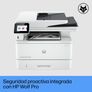 | Características especiais | | | HP GTIN (EAN/UPC) | 195161936180, 197961854619, 195161936197, 195161936203, 195161936210 | Controle de energia | | | Consumo de energia (impressão) | 510 W | | Consumo de energia (preparado) | 7,5 W | | Consumo de energia (suspenso) | 0,9 W | | Consumo de energia (desligado) | 0,06 W | | Consumo típico de eletricidade (TEC) segundo o padrão Energy Star | 0,4 kWh/semana | | tensão de entrada CA | 220 - 240 V | | frequência de entrada CA | 50/60 Hz | | Consumo de energia (economia) | 0,9 W | Características especiais | | | HP Liga/Desliga Automático | Sim | | Segurança dinâmica da HP | Sim | | Ferramentas de segurança HP | Gerenciamento de segurança: SNMP v1, v2 e v3, SSL/TLS (HTTPS), autenticação 802.1x; Segurança de rede sem fio: WPA (Wi-Fi Protected Access), WPA2, WPA3, criptografia WEP (64 e 128 bits), autenticação 802.1x (EAP-PEAP, LEAP, EAP-TLS) com servidores RADIUS. | Condições ambientais | | | Faixa de umidade operacional recomendada | 30 - 70% | | Faixa de temperatura operacional | 10 - 32,5 °C | | Faixa de temperatura de armazenamento | -20 - 40 °C | | Faixa de temperatura operacional recomendada | 15 - 27 °C | Peso e dimensões | | | Profundidade | 390 mm | | Altura | 323 mm | | Largo | 420 mm | | Peso | 12,6 kg | Características | | | Cartuchos de substituição | Cartucho de toner preto original HP LaserJet 149A (aproximadamente 2900 páginas), W1490A; Cartucho de toner preto original HP LaserJet 149X (aproximadamente 9500 páginas), W1490X | Detalhes técnicos | | | URL do Regulamento Geral de Segurança de Produtos (GPSR) | https://support.hp.com/gb-en/product/setup-user-guides/hp-laserjet-pro-mfp-4101-4104dw-fdn-fdw-printer-series/model/38347984?sku=2Z623F ; https://kaas.hpcloud.hp.com/pdf-public/pdf_3956430_en-US-1.pdf | Outras funcionalidades | | | Garantia do fabricante | Garantia de um ano, com reparo no local. As opções de garantia e suporte variam de acordo com o produto, o país e as exigências legais locais. Entre em contato com seu fornecedor contratado ou acesse https://hp.com/support para obter informações sobre as opções de suporte e serviço premiadas da HP em sua região. | Detalhes técnicos | | | Número de cartolinas por camada | 6 peças | Outras funcionalidades | | | Dimensões do palete (Largura x Profundidade x Altura) | 1200 x 1000 x 2111 mm | Dados logísticos | | | Número de camadas por palete | 4 peças | | Quantidade por palete | 24 peças | Embalagem | | | Largura da embalagem | 497 mm | | Altura da embalagem | 490 mm | | Peso da embalagem | 15,5 kg | | Profundidade do pacote | 398 mm | Desempenho | | | Memória interna | 512 MB | | Frequência do processador | 1200 MHz | | Processador integrado | Sim | Características | | | Ciclo de trabalho (máximo) | 80.000 páginas por mês | | Ciclo de trabalho | 750 a 4000 páginas por mês | | Número de cartuchos de impressão | 1 | | Cores de impressão | Preto | | Funções Duplex | Imprimir, copiar | | Idiomas de descrição da página | PostScript 3, PDF, PWG, URF, PCL 5e, PCL 6 | | Segmento HP | Pequenas e médias empresas | | Fontes de impressão | Escalável, TrueType | | Multitarefa tudo-em-um | Sim | Desempenho | | | Memória interna máxima | 512 MB | | Nível de pressão sonora (impressão) | 54 dB | | Nível de pressão sonora (varredura) | 48 dB | | Nível de potência sonora (impressão) | 6,7 dB | Outras funcionalidades | | | Requisitos de sistema recomendados | 2 GB de espaço disponível no disco rígido; conexão com a internet ou porta USB; navegador de internet. | | Número de usuários | 10 usuários | Características | | | País de origem | China | Outras funcionalidades | | | Código UNSPSC | 43212110 | Detalhes técnicos | | | Certificados de conformidade | Marca GS, CCC, EAC, BIS, Comissão Federal de Comunicações dos EUA (FCC), CE, BSMI | Outras funcionalidades | | | Emissões de potência acústica (lista) | Inaudível | | Número típico de consumo de eletricidade (TEC) | 0,40 kWh/semana (Blue Angel) | Detalhes técnicos | | | Conteúdo da caixa | Impressora HP LaserJet Pro 4102fdn; Cartucho de toner preto original HP LaserJet instalado (2900 páginas); Guia de Iniciação Rápida; Manual de Ajuda; Guia de Garantia; Manual de Regulamentos; Cabo de Alimentação | Outras funcionalidades | | | Sistemas operacionais compatíveis | Windows 11; Windows 10; Sistema Operacional Cliente Windows; Android; iOS; Sistema Operacional Móvel; macOS 10.15 Catalina; macOS 11 Big Sur; macOS 12 Monterey; macOS 13 Ventura; macOS 15 Sequoia; Chrome OS | | Formatos personalizados | Bandeja 1: 76,2 x 127 a 215,9 x 355,6 mm; Bandejas 2 e 3: 104,9 x 148,59 a 215,9 x 355,6 mm | | Compatibilidade eletromagnética | CISPR 32:2015 Classe B / EN 55032:2015 Classe B; CISPR 35:2016 / EN 55035:2017 Classe B; EN IEC 61000-3-2:2019; EN 61000-3-3:2013+A1:2019; EN 61000-4-12:2016; FCC CFR 47 Parte 15 Classe B; ICES-003, Edição 7 Classe B | Requisitos do sistema | | | Sistema operacional Windows compatível | Windows 10, Windows 11 | | Sistema operacional MAC compatível | Mac OS X 10.15 Catalina, Mac OS X 10.15.3 Catalina, Mac OS X 11.0 Big Sur, Mac OS | | Sistemas operacionais móveis suportados | Android | | Outros sistemas operacionais suportados | ChromeOS, Android, iOS | Aprovações regulatórias | | | Certificação | CISPR 32:2015 Classe B / EN 55032:2015 Classe B; CISPR 35:2016 / EN 55035:2017 Classe B; EN IEC 61000-3-2:2019; EN 61000-3-3:2013+A1:2019; EN 61000-4-12:2016; FCC CFR 47 Parte 15 Classe B; ICES-003, Edição 7 Classe B | Sustentabilidade | | | Materiais e tecnologias sustentáveis | Reciclável através do programa HP Planet Partners; Compatível com acessórios de acessibilidade; Contém plástico reciclado pós-consumo. | | Certificados de sustentabilidade | Anjo Azul | | Conformidade com as normas de sustentabilidade | Sim | pegada de carbono | | | Pegada de carbono total (kg de CO2e) | 120 | | Emissões de carbono, fa