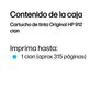 Características | | | Cara | Original | | Cores de impressão | Ciano | | Tipo de tinta | Tinta à base de pigmentos | | Marca compatível | HP | | Compatibilidade | Os cartuchos de tinta HP 912 são compatíveis com as impressoras: HP OfficeJet 8010e, 8012, 8014, 8015; HP OfficeJet Pro 8020e, 8022, 8023, 8024, 8025. | | Quantidade por embalagem | 1 peça(s) | | Número de cartuchos de tinta colorida | 1 | | Tipo de cartucho de tinta | Desempenho padrão | | volume de tinta colorida | 2,9 ml | | Rendimento de páginas com tinta colorida | 315 páginas | | Tipo de tinta colorida | Tinta à base de pigmentos | | País de origem | Singapura, Malásia | Embalagem | | | Peso da embalagem | 40 g | | Largura da embalagem | 106 mm | | Profundidade do pacote | 23 mm | | Altura da embalagem | 113,5 mm | Condições ambientais | | | Faixa de temperatura operacional | 15 - 35 °C | | Faixa de umidade relativa para operação | 20 - 80% | | Faixa de temperatura de armazenamento | -40 - 60 °C | Características especiais | | | HP GTIN (EAN/UPC) com opções | (301) 192545866729; (BGX) 192545866705; (BGY) 192545866712; (LS1) 199764686589; (LS2) 199764686596; (LS3) 199764686602; (NE1) 199251972669 |