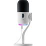 | Peso e dimensões | | | Largo | 100 mm | | Profundidade | 100 mm | | Peso do microfone | 616 g | Controle de energia | | | Fonte de energia | USB | Conteúdo da embalagem | | | Conteúdo da embalagem | Microfone USB, suporte de mesa removível, adaptador para braços articulados e pedestais de microfone (* e *), cabo USB-C para USB-A de 2 m, documentação do usuário | Desempenho | | | Comprimento do cabo | 2 m | | Cor do produto | Preto, Branco | Conteúdo da embalagem | | | Cabos incluídos | USB Tipo A para USB Tipo C | Desempenho | | | Tipo de controle | Botões, Rotativo | Conteúdo da embalagem | | | Suporte de mesa | Sim | | Número de produtos incluídos | 1 peça(s) | Desempenho | | | Sistema operacional Windows compatível | Windows 10, Windows 11 | | Sistema operacional MAC compatível | Mac OS X 10.14 Mojave, Mac OS X 10.15 Catalina, Mac OS X 10.15.3 Catalina, Mac OS | Outras funcionalidades | | | Manual do usuário | Sim |