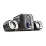 | Embalagem | | | Altura da embalagem | 175 milímetros | Subwoofer | | | Dimensões do subwoofer (L x C x A) | 128 x 100 x 107 mm | | Peso do subwoofer | 275 g | Alto-falantes satélite | | | Dimensões do alto-falante satélite (L x C x A) | 84 x 57 x 64 mm | | Peso do alto-falante satélite | 123 g | | Potência RMS dos alto-falantes satélite | 3 W | | Número de satélites | 2 | Subwoofer | | | Potência RMS do subwoofer | 5 W | Alto-falantes satélite | | | Sensibilidade do alto-falante satélite | 30 dB | | Faixa de frequência do alto-falante satélite | 150 - 20000 Hz | Conteúdo da embalagem | | | Cabos incluídos | DC | Alto-falantes satélite | | | Tipo de alto-falante satélite | 2 vias | Portas e Interfaces | | | Tecnologia de conectividade | Com fio | Subwoofer | | | Tipo de subwoofer | Subwoofer ativo |