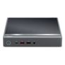 | Gráficos | | | Adaptador gráfico integrado | Sim | | Fabricante de GPU integrada (Unidade de Processamento Gráfico) | Intel | | Família de adaptadores gráficos integrados | Gráficos Intel® UHD | | Adaptador gráfico discreto | Não | | Modelo de Adaptador Gráfico Discreto | Não disponível | Projeto | | | Tipo de chassi | Mini PC | | Cor do produto | Prata | | Suporte VESA | Sim | Desempenho | | | Sistema de áudio | Áudio de alta definição | | Módulo de plataforma confiável (TPM) | Sim | | Posicionamento de mercado | Negócios | | Tipo de produto | Mini PC | Software | | | Sistema operacional instalado | FreeDOS | Portas e interfaces | | | Número de portas USB 2.0 | 3 | | Número de portas HDMI | 1 | | Número de portas DisplayPort | 1 | | Tomada de entrada CC | Sim | | Versão HDMI | 1,4b | | Porta combinada para fone de ouvido/microfone | Sim | | Número de portas USB 3.2 Gen 1 (3.1 Gen 1) Tipo A | 2 | | Número de portas USB 3.2 Gen 1 (3.1 Gen 1) Tipo-C | 2 | | Número de portas USB 3.2 Gen 2 (3.1 Gen 2) Tipo A | 1 | Conexão | | | Ethernet | Sim | Peso e dimensões | | | Profundidade | 178 mm | | Altura | 30 mm | | Largo | 178 mm | | Peso | 2,25 kg | Exposição | | | Tela incluída | Não |