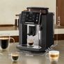 Recursos e programas de culinária | | | Preparação do café | Sim | | Preparação do Ristretto | Sim | | Preparação de expresso | Sim | | Preparação de cappuccino | Sim | | Número de programas | 5 | | Várias bebidas | Sim | Ergonomia | | | Indicador de cal | Sim | | Reservatório de água removível | Sim | | Visor integrado | Não | | Tipo de controle | Botões, Toque | | Fácil de usar | Sim | | Nível de água visível | Sim | | Cor do produto | Preto, Cromado | Embalagem | | | Profundidade do pacote | 385 milímetros | | Altura da embalagem | 525 milímetros | | Largura da embalagem | 291 milímetros | | Peso da embalagem | 9,5 kg | | Quantidade por pacote | 1 peça(s) | | Tipo de embalagem | Caixa | Desempenho | | | Número de configurações de intensidade do café | 3 | | Intensidade ajustável do café | Sim | | Moedor integrado | Sim | | Número de posições do moedor | 5 | | Número de configurações de temperatura | 3 | | Função de enxágue | Sim | | Função de autolimpeza | Sim | Controle de potência | | | Tipo de plugue | Tipo C | Peso e dimensões | | | Altura | 364 milímetros | | Profundidade | 346 milímetros |