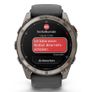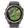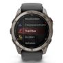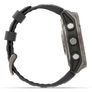 Projeto | | | Material da banda | Silicone | | Funções de proteção | Resistente à água | | Posicionamento de mercado | Relógio esportivo | | Forma | Em volta | | Cor da faixa | Preto | | Cor da fivela | Cinza | | Resistência à água | 10 caixas eletrônicos | | Observe a cor do corpo | Grafite, Titânio | | Material da caixa do relógio | Polímero, Titânio | | Tamanho do corpo do relógio | 51 mm | | Tamanho do pulso | 127 - 210 mm | Características | | | Bússola eletrônica | Sim | | altímetro barométrico | Sim | | Serviço de mensagens curtas (SMS) | Sim | | Reprodutor de música | Sim | | Alarme | Sim | | Calendário | Sim | | Cronômetro | Sim | | Firmware atualizável | Sim | | Gestão de informações pessoais | Despertador, calculadora, calendário, pedômetro, cronômetro | | Termômetro | Sim | | monitor de frequência cardíaca | Sim | | Intervalo de treino | Sim | | Treinamento avançado | Sim | | Cálculo de área | Sim | | Sensor de luz ambiente | Sim | | Acelerômetro | Sim | | Giroscópio | Sim | | Pedômetro | Sim | | Recomendações de treinamento | Sim | | Tempo de recuperação sugerido | Sim | | Botões dedicados para smartwatch | Função | | Atividade recomendada | Badminton, Beisebol, Basquete, Boxe, Técnicas de Respiração, Montanhismo, Ciclismo, Mergulho, Pesca, Futebol, Golfe, Ginástica, HIIT, Caminhada, Hóquei, Caça, Esportes a Motor, Remo ao Ar Livre, Canoagem, Pilates, Ciclismo, Remo, Corrida, Vela, Skate, Esqui, Snowboard, Simulador de Escada, Surfe, Natação, Tênis, Triatlo, Vôlei, Corrida Leve, Ioga | | Supervisão de atividades | Sim | | Aplicativos compatíveis | Connect IQ | | Controle de música | Sim | | Função "Encontrar meu telefone" | Sim | | pausa automática | Sim | | Medindo o efeito do treinamento | Sim | | Função de Parceiro Virtual | Sim | | Função de piloto virtual | Sim | | Modo multiesportivo | Sim | | Perfis para várias bicicletas | Sim | | Minutos ativos | Sim | | Calorias queimadas | Sim | | Distância percorrida | Sim | | Qualidade do sono | Sim | | Temporizador | Sim | | Notificações inteligentes | Sim | | Notificações de chamadas | Sim |