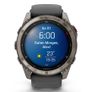 | Características | | | notificações por SMS | Sim | | Rastreamento de atividades | Sim | | Visualização meteorológica | Sim | | Notificações do calendário | Sim | | Medição da frequência cardíaca | Automático, Manual | | Função de alerta SOS | Sim | | sensor de nível de oxigênio no sangue | Sim | | Função de monitoramento de estresse | Sim | | sensor de temperatura da pele | Sim | | Medidor de profundidade | Sim | | Detecção da apneia do sono | Sim | Portas e interfaces | | | Bluetooth | Sim | | Wi-fi | Sim | | Fones de ouvido | Não | | Comunicação por campo de proximidade (NFC) | Sim | | porta USB | Não | Exposição | | | diagonal da tela | 3,56 cm (1,4") | | Resolução da tela | 454 x 454 pixels | | Tela sensível ao toque | Sim | | Tipo de vidro de relógio | Safira | | Tipo de exibição | Digital | | Tecnologia de exibição | AMOLED | | Diâmetro da tela | 3,56 cm | | Tela colorida | Sim | | Tela sempre ativa | Sim | Controle de energia | | | Tecnologia de baterias | Íon de lítio | | Tipo de Bateria | Bateria integrada | Desempenho | | | Microfone embutido | Sim | | Rádio FM | Não | | Alto-falantes integrados | Sim | | Memória flash | 32 GB | | Câmera integrada | Não | | Sistemas operacionais móveis suportados | Android, iOS | Controle de energia | | | Duração da bateria | 27 dias | | Autonomia | 648 h | | Duração da bateria (modo GPS) | 123 h | Peso e dimensões | | | Largo | 51 mm | | Profundidade | 51 mm | | Grossura | 1,65 cm | | Peso | 90 g | | Largura de banda | 2,6 cm | Conexão | | | GPS (satélite) | Sim | Conteúdo da embalagem | | | Manual do usuário | Sim | Conexão | | | GLONASS | Sim | | ANT+ ativado | Sim | Conteúdo da embalagem | | | Carregador | Sim | Conexão | | | Conexão de rede móvel | Sim | | BeiDou | Sim | | Galileu | Sim | | Sistema de Satélite Quase-Zenith (QZSS) | Sim |