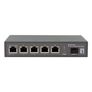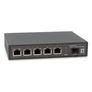 | Projeto | | | Indicadores LED | Link, PoE, Energia | | Montagem em rack | Não | | Empilhável | Não | | Cor do produto | Preto | Desempenho | | | Sem ventilador | Sim | | Tempo médio entre falhas | 300.000 h | Peso e dimensões | | | Peso | 320 g | | Largo | 131 mm | | Profundidade | 78 mm | | Altura | 28 mm | Embalagem | | | Tipo de embalagem | Caixa | Controle de energia | | | Fonte de alimentação incluída | Sim | | Fonte de energia | DC | | tensão de entrada CC | 52 V | | Corrente de entrada | 1,25 A | | Consumo de energia | 2 W | Condições ambientais | | | Faixa de umidade relativa para operação | 10 - 90% | | Faixa de temperatura operacional | 0 - 40 °C | Alimentação via Ethernet (PoE) | | | Alimentação via Ethernet (PoE) | Sim | | Orçamento para Power over Ethernet (PoE) | 65 W | Aprovações regulatórias | | | Certificados de conformidade | CE, Comissão Federal de Comunicações (FCC) dos Estados Unidos | Alimentação via Ethernet (PoE) | | | Número de portas Power over Ethernet (PoE) | 4 |