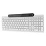 Rato | | | Rato incluído | Não | Projeto | | | Indicadores LED | Sim | | Cor do produto | Branco | | Retroiluminação | Não | | Altura do teclado ajustável | Sim | Teclado | | | Certificação | BQB, Compra BQB QDID, SRRC, ANATEL, UKCA CE RED, EAC, UkrSEPRO, TCRA, RCM SDOC, BIS, WPC, TRC, ICASA, Maghreb, ECAS, ATT, CONATEL, URSEC, IFETEL, NOM-019 | | dispositivo apontador | Não | | Teclado, número de teclas | 109 | | teclado numérico | Sim | | Versão Bluetooth | 5.1 | | Tecnologia de conectividade | Sem fio | | Uso recomendado | Escritório | | Interface do dispositivo | Bluetooth | | Idioma do teclado | Espanhol | | Formato do teclado | Completo (100%) | | Distância de viagem principal | 2 mm |