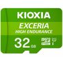 Kioxia Exceria High Endurance. Capacidade: 32 GB, Tipo de cartão flash: MicroSDHC, Classe de memória flash: Classe 10, Tipo de memória interna: UHS-I, Velocidade de leitura: 100 MB/s, Velocidade de gravação: 30 MB/s, Classe de velocidade UHS: Classe 1 (U1), Classe de velocidade de vídeo: V10. Recursos de proteção: Resistente a choques, Resistente à água, À prova de raios-X, Cor do produto: Verde, Branco