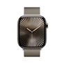 Projeto | | | Umidade: Resistente à água até | 50 m | | Material da banda | Aço inoxidável | | Código IP (Proteção Internacional) | IP6X | | Funções de proteção | À prova de poeira, resistente à água, impermeável | | Posicionamento de mercado | Smartwatch | | Forma | Retangular | | Cor da faixa | Aço inoxidável | | Tamanho da faixa | VÓS | | Alça removível | Sim | | Conector de carregamento magnético | Sim | | Tamanho do corpo do relógio | 46 mm | | Observe a cor do corpo | Titânio | | Material da caixa do relógio | Titânio | Características | | | Bússola eletrônica | Sim | | Gestão de informações pessoais | Ciclo menstrual, SOS | | monitor de frequência cardíaca | Sim | | Sensor de temperatura da água | Sim | | Altímetro | Sim | | Sensor de luz ambiente | Sim | | Acelerômetro | Sim | | Giroscópio | Sim | | Qualidade do sono | Sim | | Assistente Virtual | Siri da Apple | | Rastreamento de atividades | Sim | | Tipo de sensor de frequência cardíaca | Elétrica, Óptica | | Feedback háptico | Sim | | Função de alerta SOS | Sim | | sensor de temperatura da pele | Sim | | gesto de toque duplo | Sim | | Avisos de ritmo irregular | Sim | | notificações de baixa capacidade aeróbica | Sim | | Medidor de profundidade | Sim | | Detecção da apneia do sono | Sim | Portas e interfaces | | | Padrões Wi-Fi | Wi-Fi 4 (802.11n) | | Versão Bluetooth | 5.3 | | Bluetooth | Sim | | Wi-fi | Sim | | Fones de ouvido | Bluetooth | | Comunicação por campo de proximidade (NFC) | Sim | | porta USB | Não | Exposição | | | Brilho da tela | 2000 cd/m² | | Resolução da tela | 416 x 496 pixels | | Tela sensível ao toque | Sim | | Tipo de vidro de relógio | Safira |
