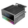 Desempenho | | | Localização adequada | Processador | | Cara | Resfriador de ar | | Diâmetro do ventilador | 12 cm | | Soquetes de processador suportados | LGA 1150 (soquete H3), LGA 1151 (soquete H4), LGA 1155 (soquete H2), LGA 1156 (soquete H), LGA 1200 (soquete H5), LGA 1366 (soquete B), LGA 1700, LGA 1851, soquete AM4, soquete AM5 | | Quantidade por embalagem | 1 peça(s) | | Compatível com modulação por largura de pulso (PWM) | Sim | | Nível de ruído do ventilador (min.) | 9 dB | | Nível de ruído do ventilador (máx.) | 28 dB | | Tipo de suporte | Hidráulico | | Velocidade do ventilador (min) | 800 RPM | | Velocidade máxima da ventoinha | 2600 RPM | | Fluxo de ar máximo | 74 cfm | | Tempo médio até a falha (MTTF) do ventilador | 60000 h | | Pressão mínima do ar | 0,85 mmH2O | | Pressão máxima do ar | 1,42 mmH2O | Projeto | | | Cor do produto | Preto | | Iluminação LED | Sim | | Iluminação colorida | Múltiplo | | Tipo de exibição | LCD | | Número de fãs | 1 fã(s) | | Material do radiador | Alumínio |