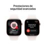 Projeto | | | Umidade: Resistente à água até | 50 m | | Material da banda | Borracha | | Código IP (Proteção Internacional) | IP6X | | Funções de proteção | À prova de poeira, resistente à água, impermeável | | Posicionamento de mercado | Smartwatch | | Forma | Retangular | | Cor da faixa | Rosa | | Tamanho do pulso | 140 - 245 mm | | Tamanho da faixa | M/L | | Alça removível | Sim | | Conector de carregamento magnético | Sim | | Tamanho do corpo do relógio | 46 mm | | Observe a cor do corpo | Ouro rosa | | Material da caixa do relógio | Alumínio | Características | | | Bússola eletrônica | Sim | | Gestão de informações pessoais | SOS | | monitor de frequência cardíaca | Sim | | Sensor de temperatura da água | Sim | | Altímetro | Sim | | Sensor de luz ambiente | Sim | | Acelerômetro | Sim | | Giroscópio | Sim | | Modo multiesportivo | Sim | | Função de marcapasso virtual | Sim | | Distância percorrida | Sim | | Qualidade do sono | Sim | | Monitoramento de exercícios | Sim | | Assistente Virtual | Siri da Apple | | Rastreamento de atividades | Sim | | Tipo de sensor de frequência cardíaca | Elétrica, Óptica | | Feedback háptico | Sim | | Função de alerta SOS | Sim | | sensor de nível de oxigênio no sangue | Sim | | Recursos de acessibilidade | Atalho de acessibilidade, AssistiveTouch, Equilíbrio de volume de áudio, Transcrição automática, Atendimento automático de chamadas, Texto em negrito, Velocidade de clique do botão, Filtros de cor, Alertas horários, Aumentar contraste, Ouvir ao vivo, Fala ao vivo, Áudio mono, Etiquetas de ligar/desligar, Voz pessoal, Suporte a RTT, Reduzir movimento, Reduzir transparência, Tempo tátil, Tamanho do texto, Adaptações de toque, Digitar para a Siri, VoiceOver, Zoom | | sensor de temperatura da pele | Sim | | gesto de toque duplo | Sim | | Avisos de ritmo irregular | Sim | | Medidor de profundidade | Sim | | Detecção da apneia do sono | Sim | | Atividade recomendada | Relaxamento, Ciclismo, Dança, Elíptico, Golfe, HIIT, Caminhada, Kickboxing, Remo ao ar livre, Canoagem, Pilates, Corrida, Esqui, Snowboard, Simulador de escada, Natação, Tai Chi, Corrida leve, Cadeira de rodas, Ioga | Portas e interfaces | | | Padrões Wi-Fi | Wi-Fi 4 (802.11n) | | Versão Bluetooth | 5.3 | | Bluetooth | Sim | | Wi-fi | Sim | | Fones de ouvido | Bluetooth | | Comunicação por campo de proximidade (NFC) | Sim | | porta USB | Não | | Bluetooth Low Energy (BLE) | Sim | Exposição | | | Brilho da tela | 2000 cd/m² | | Resolução da tela | 416 x 496 pixels | | Tela sensível ao toque | Sim | | Tipo de vidro de relógio | Vidro Ion-X |