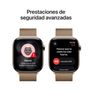 Projeto | | | Umidade: Resistente à água até | 50 m | | Material da banda | Aço inoxidável | | Código IP (Proteção Internacional) | IP6X | | Funções de proteção | À prova de poeira, resistente à água, impermeável | | Posicionamento de mercado | Smartwatch | | Forma | Retangular | | Cor da faixa | Titânio | | Tamanho do pulso | 140 - 245 mm | | Tamanho da faixa | M/L | | Alça removível | Sim | | Conector de carregamento magnético | Sim | | Tamanho do corpo do relógio | 46 mm | | Observe a cor do corpo | Titânio | | Material da caixa do relógio | Titânio | Características | | | Bússola eletrônica | Sim | | Gestão de informações pessoais | SOS | | monitor de frequência cardíaca | Sim | | Sensor de temperatura da água | Sim | | Altímetro | Sim | | Sensor de luz ambiente | Sim | | Acelerômetro | Sim | | Giroscópio | Sim | | Modo multiesportivo | Sim | | Função de marcapasso virtual | Sim | | Distância percorrida | Sim | | Qualidade do sono | Sim | | Monitoramento de exercícios | Sim | | Assistente Virtual | Siri da Apple | | Rastreamento de atividades | Sim | | Tipo de sensor de frequência cardíaca | Elétrica, Óptica | | Feedback háptico | Sim | | Função de alerta SOS | Sim | | sensor de nível de oxigênio no sangue | Sim | | Recursos de acessibilidade | Atalho de acessibilidade, AssistiveTouch, Equilíbrio de volume de áudio, Transcrição automática, Atendimento automático de chamadas, Texto em negrito, Velocidade de clique do botão, Filtros de cor, Alertas horários, Aumentar contraste, Ouvir ao vivo, Fala ao vivo, Áudio mono, Etiquetas de ligar/desligar, Voz pessoal, Suporte a RTT, Reduzir movimento, Reduzir transparência, Tempo tátil, Tamanho do texto, Adaptações de toque, Digitar para a Siri, VoiceOver, Zoom | | sensor de temperatura da pele | Sim | | gesto de toque duplo | Sim | | Avisos de ritmo irregular | Sim | | Medidor de profundidade | Sim | | Detecção da apneia do sono | Sim | | Atividade recomendada | Relaxamento, Ciclismo, Dança, Elíptico, Golfe, HIIT, Caminhada, Kickboxing, Remo ao ar livre, Canoagem, Pilates, Corrida, Esqui, Snowboard, Simulador de escada, Natação, Tai Chi, Corrida leve, Cadeira de rodas, Ioga | Portas e interfaces | | | Padrões Wi-Fi | Wi-Fi 4 (802.11n) | | Versão Bluetooth | 5.3 | | Bluetooth | Sim | | Wi-fi | Sim | | Fones de ouvido | Bluetooth | | Comunicação por campo de proximidade (NFC) | Sim | | porta USB | Não | | Bluetooth Low Energy (BLE) | Sim | Exposição | | | Brilho da tela | 2000 cd/m² | | Resolução da tela | 416 x 496 pixels | | Tela sensível ao toque | Sim | | Tipo de vidro de relógio | Safira |
