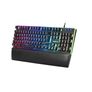 Rato | | | Mouse incluso | Não | Projeto | | | Material | Acrilonitrila butadieno estireno (ABS), Alumínio | | Tipo de luz de fundo | LED RGB | | Luz de fundo ajustável | Sim | | Retroiluminação | Sim | | Estilo de teclado | Certo | | Descanso de pulso | Sim | | Cor do produto | Preto | Características | | | Anti-fantasma | Sim | | Comprimento do cabo | 1,5 m | Teclado | | | Idioma do teclado | Espanhol | | Layout do teclado | QWERTY | | Interruptor de teclado | Interruptor mecânico | | Uso recomendado | Jogo | | Layout do teclado | Completo (100%) | | Interface do dispositivo | USB |