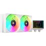 Desempenho | | | Cara | Kit de refrigeração líquida | | Diâmetro do ventilador | 12 cm | | Soquetes de processador suportados | Intel LGA1851, LGA 1150 (soquete H3), LGA 1151 (soquete H4), LGA 1155 (soquete H2), LGA 1156 (soquete H), LGA 1200 (soquete H5), LGA 1366 (soquete B), LGA 1700, LGA 1851, LGA 2011 (soquete R), LGA 2011-v3 (soquete R), LGA 2066, soquete AM4, soquete AM5 | | Localização adequada | Processador | | Fluxo de ar máximo | 69,2 cfm | | velocidade do motor da bomba | 2800 RPM | | Velocidade máxima da ventoinha | 2000 RPM | | Velocidade do ventilador (min) | 800 RPM | | Tipo de suporte | Hidráulico | | Quantidade por embalagem | 1 peça(s) | | Nível de ruído do ventilador (min.) | 9 dB | | Nível de ruído do ventilador (máx.) | 26 dB | | Nível de ruído da bomba | 15 dB | | Compatível com modulação por largura de pulso (PWM) | Sim | | Conector da bomba | 3 pinos | Projeto | | | Cor do produto | Branco | | Número de fãs | 2 fãs | | Iluminação colorida | Múltiplo | | Material base da placa | Cobre | | Conector do ventilador | 4 pinos | | Material do radiador | Alumínio | | Iluminação LED | Sim |