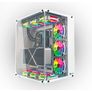Projeto | | | Fator de forma | Mesa | | Cara | PC | | Material | Metal, Vidro temperado | | Fatores de forma de placa-mãe suportados | ATX, EATX, micro ATX | | Cor do produto | Branco | | Número de baias 2,5'' | 2 | | Número de baias internas de 3,5" | 2 | | Montagem em rack | Não | | Janela lateral | Sim | | Adequado para | Jogo | | Raio | Sim | | Iluminação colorida | Azul, Verde, Vermelho | | Localização da iluminação | Interno | | Painel(is) de vidro temperado | Sim | | Alto-falantes embutidos | Não | | Filtro de poeira | Sim | | Altura máxima do cooler da CPU | 14 cm | | Comprimento máximo da placa gráfica | 39 cm | | Indicadores LED | Unidade de disco rígido, energia | | Gerenciamento de cabos | Sim | | Botão Restaurar | Sim | | Botão liga/desliga | Sim | Portas e Interfaces | | | Número de portas USB 2.0 | 2 | | Número de portas USB 3.2 Gen 1 (3.1 Gen 1) Tipo A | 2 | | Entrada de áudio | Sim | | Saída de áudio | Sim | Peso e dimensões | | | Espessura do material | 0,75 milímetros | | Largo | 405 milímetros |