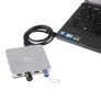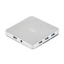Características | | | Velocidade de transferência de dados | 5000 Mbit/s | | Cor do produto | Prata | | Plug and Play | Sim | | Indicadores LED | Sim | | Material de construção | Alumínio | Desempenho | | | Código do Sistema Harmonizado (SH) | 84719000 | Requisitos do sistema | | | Sistema operacional Windows compatível | Windows 7 Home Basic, Windows 7 Home Basic x64, Windows 8, Windows 8 x64, Windows 8.1, Windows 8.1 x64, Windows Vista Home Basic, Windows XP Home | | Sistema operacional MAC compatível | Mac OS X 10.0 Cheetah, Mac OS X 10.1 Puma, Mac OS X 10.2 Jaguar, Mac OS | Portas e interfaces | | | Número de portas | 10 | | Interfaces de hub | USB 3.2 Gen 1 (3.1 Gen 1) Tipo A | | Número de portas USB 3.2 Gen 1 (3.1 Gen 1) Tipo A | 10 | | Interface do host | USB 3.2 Gen 1 (3.1 Gen 1) Tipo A | | Tomada de entrada CC | Sim | Controle de energia | | | Tensão de entrada | 100 - 240 V | | frequência de entrada CA | 50 - 60 Hz | | Corrente de saída | 4 A |