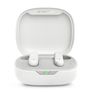 Desempenho | | | Tipo de produto | Fones de ouvido | | Estilo de uso | Dentro da orelha | | Uso recomendado | Chamadas/Música | | Tipo de fone de ouvido | Binaural | | Cor do produto | Branco | | Tipo de controle | Tocar | | Tipo de controles | unidade de controle auricular | | Nível de pressão sonora (máx.) | 95 dB | | Reprodução de música | Sim | | Adequado para uso interno. | Sim | | Adequado para uso externo. | Sim | | Código IP (Proteção Internacional) | IP54 | | Funções de proteção | À prova de poeira, resistente à água | Portas e interfaces | | | Tecnologia de conectividade | Sem fio | | Bluetooth | Sim | | Perfis Bluetooth | A2DP, AVRCP, HFP | | Versão Bluetooth | 5.3 | | Frequência da banda | 2,4 - 2,4835 GHz | | Conector USB | USB Tipo-C | Bateria | | | Bateria | Sim | | Tipo de Bateria | Bateria integrada | | Tecnologia de baterias | Íon de lítio | | Capacidade da bateria | 45 mAh | | Tensão de entrada (fones de ouvido) | 3,85 V | | Tensão de entrada (caixa de carregamento) | 3,8 V | | Tecnologia da bateria (estojo de carregamento) | Íon de lítio | | Capacidade da bateria (estojo de carregamento) | 550 mAh | | Tempo de recarga da bateria | 2 horas | | Tempo de conversação | 6 horas | | Tempo de reprodução contínua de áudio | 8 horas | Fones de ouvido | | | Fones de ouvido | Intra-auricular | | Fones de ouvido intra-auriculares | Fones de ouvido |